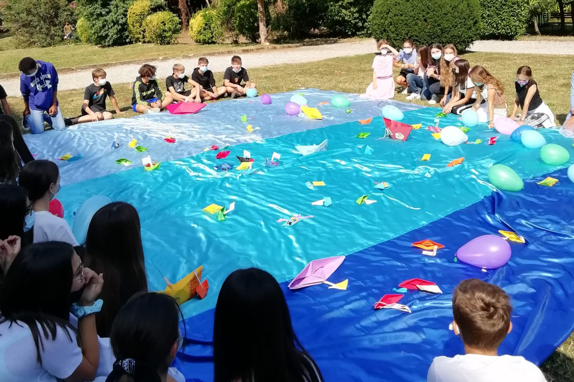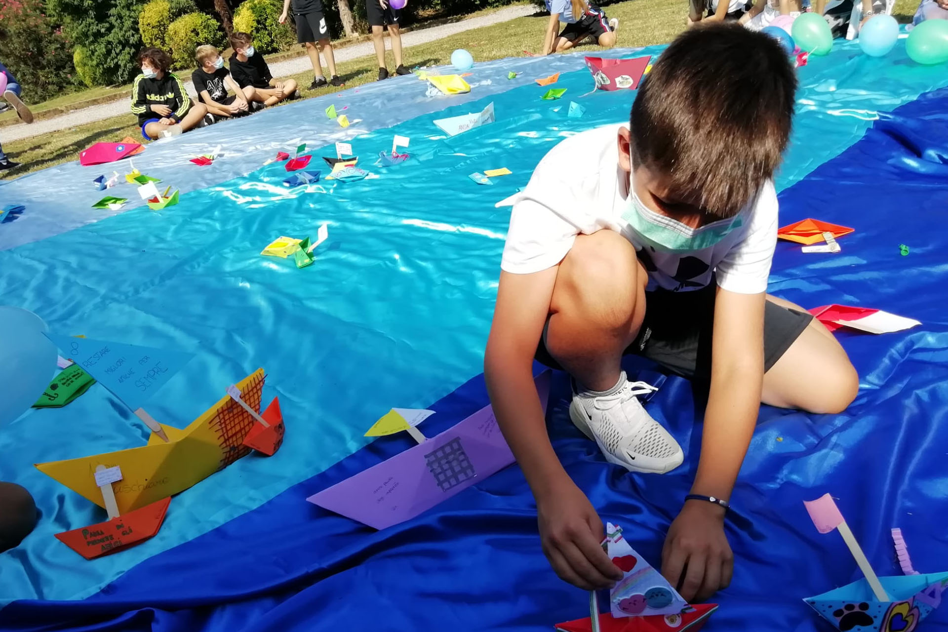 Ciascuno ha realizzato la sua barca in origami, poi, dopo aver riflettuto sulle paure e i propri limiti, tutte le imbarcazioni hanno preso il largo su un mare azzurro di raso e palloncini colorati. Ognuna era riempita di idee e di sogni protesi verso il futuro che attrae, sorprende e non fa paura, verso uno spazio che non genera ansie e angosce, ma che apre alla conoscenza e alla vita. Navigatio vitae, dicevano i latini ed il mare è simbolo della scoperta, del bello, del sublime. I viaggiatori partono per partire, diceva ancora Baudelaire, perché la vita è il viaggio alla scoperta di sé e del mondo. Allora spigate le vele, ragazzi, partiamo insieme oltre le frontiere, oltre i confini, oltre le tradizioni, al di là degli stereotipi e delle fragili certezze. Esistono paesaggi meravigliosi dentro e fuori di voi ancora da visitare. Buon viaggio!