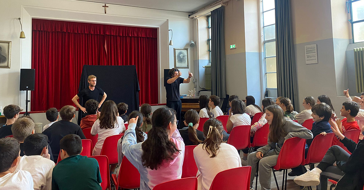 Nella giornata del 23 maggio, la scuola secondaria ha ospitato Eddie e Conor, due attori della compagnia teatrale Action Theatre.