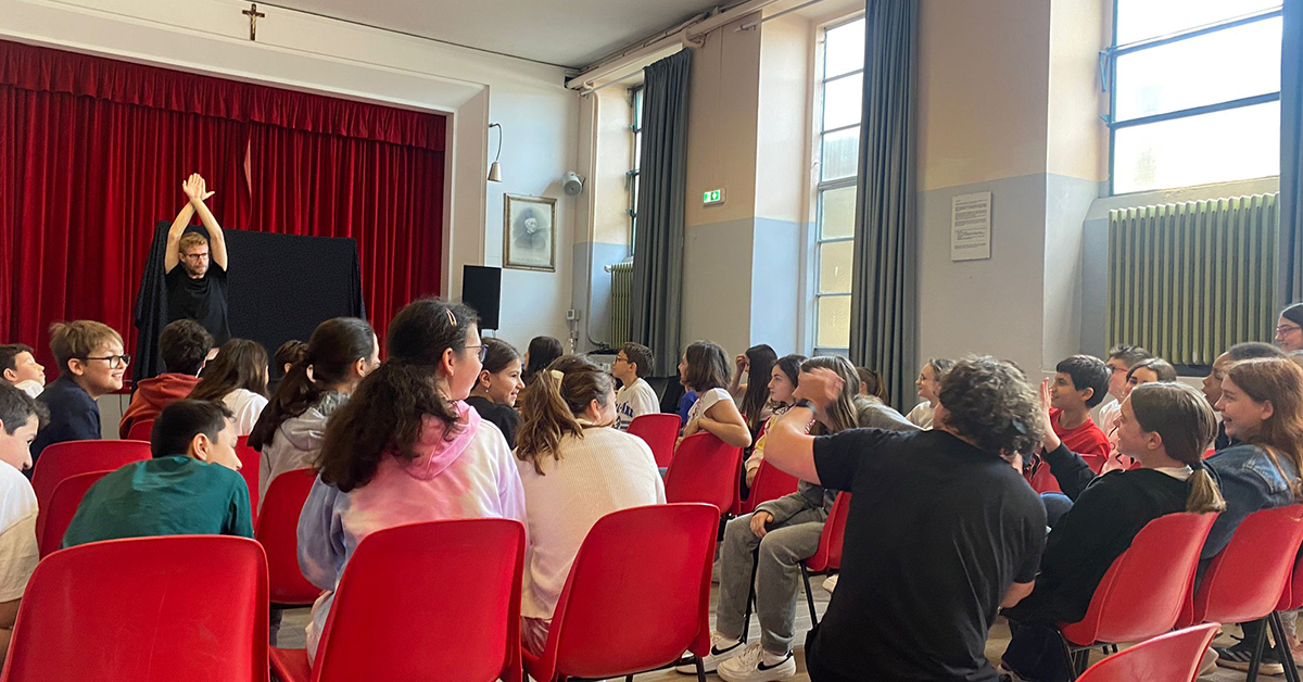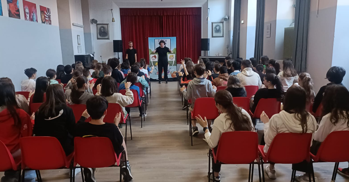 I ragazzi di seconda e terza media hanno ascoltato una storia ambientata nella SillyCon Valley (la valle dello schiocco truffatore), dove un giovane ragazzo, Aladinnet, si è ritrovato, suo malgrado, ad aiutare il malefico Bezuckebag a recuperare un Istone contenente un genio, in grado di esaudire desideri. Dopo lo Storytelling, i due attori hanno coinvolto i ragazzi con un Quiz Time in tre round; in conclusione, sono stati rappresentati due brevi sketch riguardanti la dipendenza dall’uso dello smartphone.