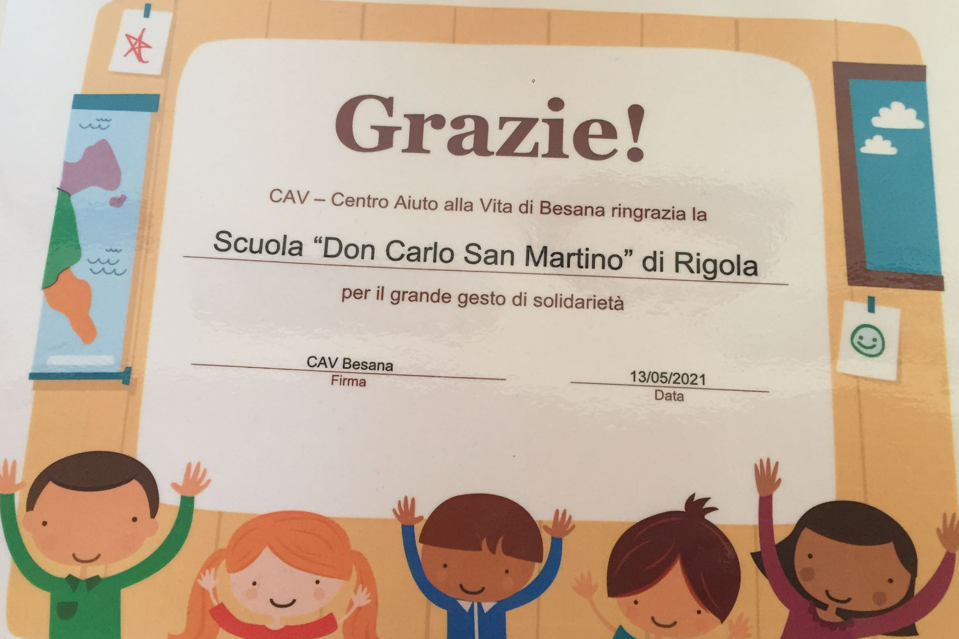 Abbiamo voluto prestare il nostro aiuto a un’importante realtà del nostro territorio, il CAV (Centro Aiuto alla Vita): questa associazione è vicina alle donne che incontrano gravi difficoltà a portare a termine una gravidanza o nei primi mesi di vita del neonato; viene offerto loro un sostegno educativo e psicologico nonché un aiuto materiale con tutto ciò che serve per favorire una crescita sana del bambino.