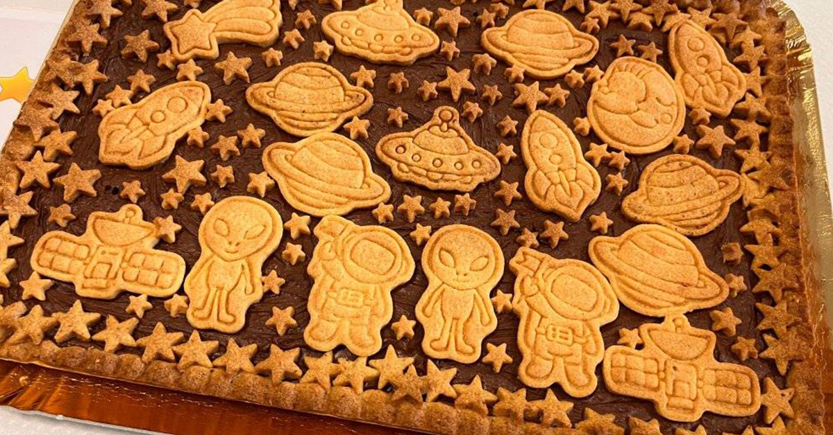 Io mi sono occupata dell’allestimento e della supervisione alla cooking challenge. La partecipazione è stata numerosissima e i due team, dolce e salato, si sono “dati battaglia” a suon di muffin spaziali, torte a forma di navicelle e dolcissime galassie contro bocconcini stellari, salatini di pianeti e una vera luna “cheese”. Insomma, è stato difficilissimo orientarsi tra queste leccornie! È stata una challenge davvero cosmica!” [B.S.]