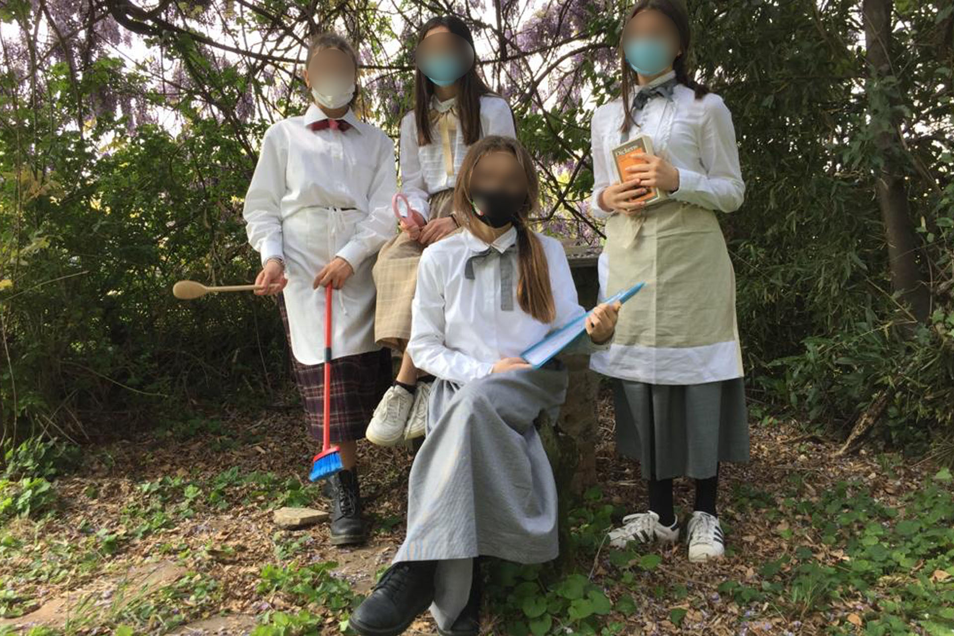 Ecco che, in occasione di questa importante giornata, il progetto affrontato in remoto dai ragazzi della prima media ha preso forma ancora più concreta, in una giornata vissuta di persona nel parco della nostra scuola, che si è animato di personaggi letterari, d’arte e di cinema.