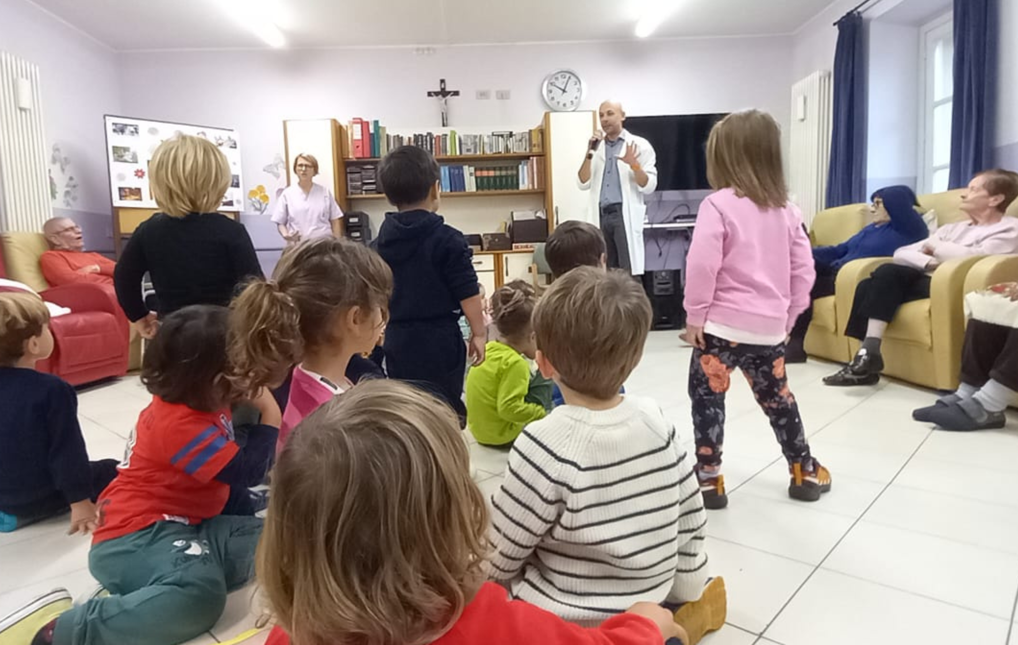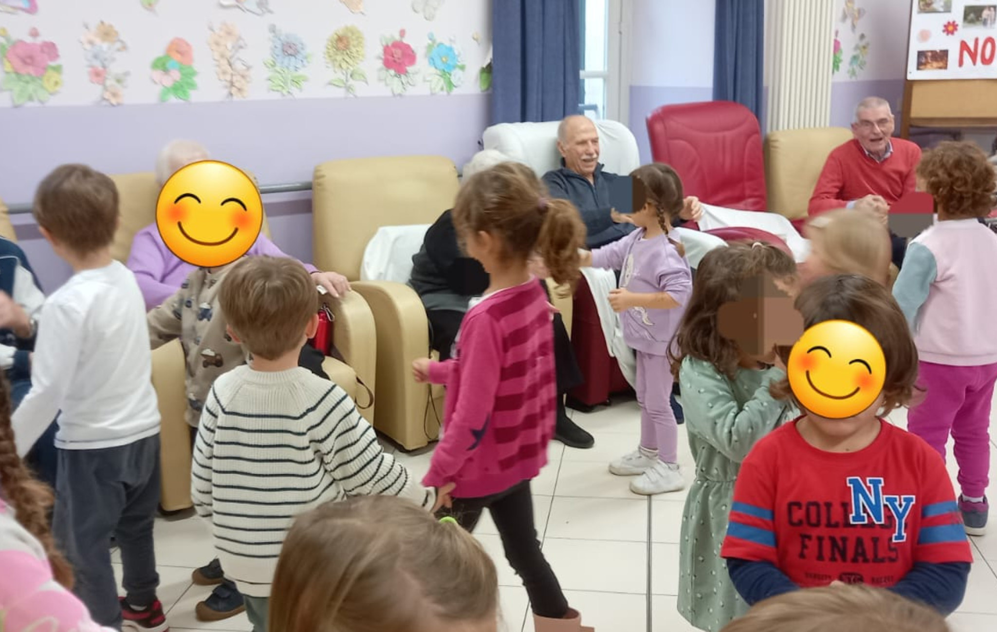 Dopo aver ospitato i nonni tra noi, è ora il momento per i nostri studenti di uscire, esplorare e portare la loro rete anche fuori dalle nostre mura. La prima iniziativa è stata una visita alla RSA del territorio, dove abbiamo avuto l’opportunità di trascorrere una giornata speciale insieme agli anziani. Abbiamo cantato insieme, scambiato sorrisi e chiacchiere e condiviso un’altra merenda.