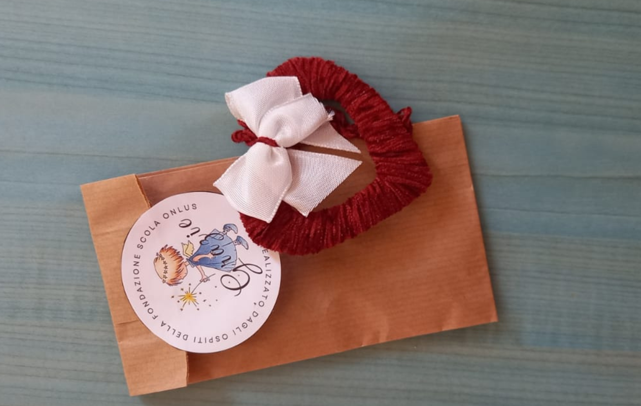 Gli ospiti ci hanno donato dei cuoricini all’uncinetto fatti a mano, un simbolo prezioso del loro affetto e della loro cura. In cambio, noi abbiamo portato un grande cartellone con le impronte dei bambini, che rappresenta la strada percorsa per arrivare da loro, come un simbolo visivo del nostro cammino verso la connessione con la comunità.